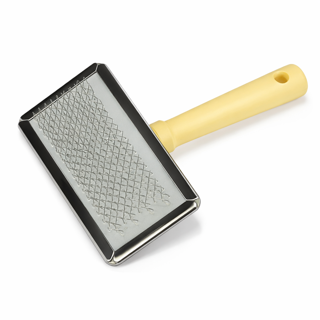 Carda suave de tamaño M, ideal para el cepillado regular de perros con pelo corto o medio. Diseñada para eliminar pelo muerto y pequeños nudos de forma eficaz pero respetuosa con la piel. Es un producto sencillo, funcional y fácil de usar, perfecto tanto para uso doméstico como para incluir en packs de higiene.